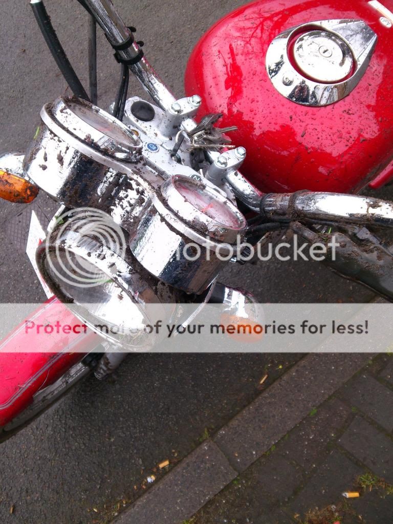 Finally happened. Left home around 5.30 this morning, nice and frosty. Only got round the corner when the accelerator cable jammed leaving me in full throttle  i shat myself and didnt want it revving its tits off..... somewhere between trying to upshift to lower the revs, trying to turn the key off and possible braking (all happened so quick) i ended up loosing the back end, then the front end and i was soon sliding trapped under the bike till it hit/mounted the curb.
