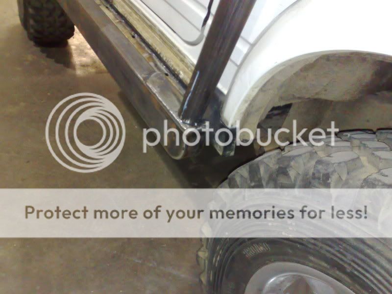 Was then all put back together and back on its wheels to check out the lift and start mounting the roll cage. First a set of rock sliders were made up, these should be sufficient :hehe: