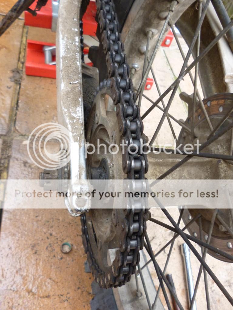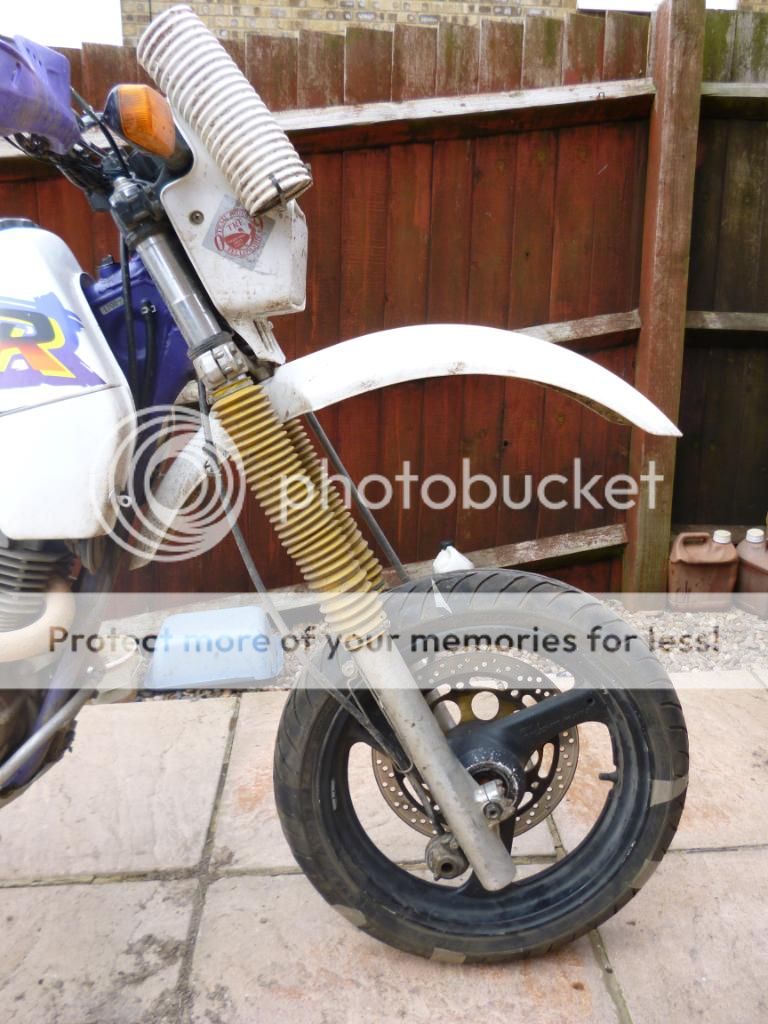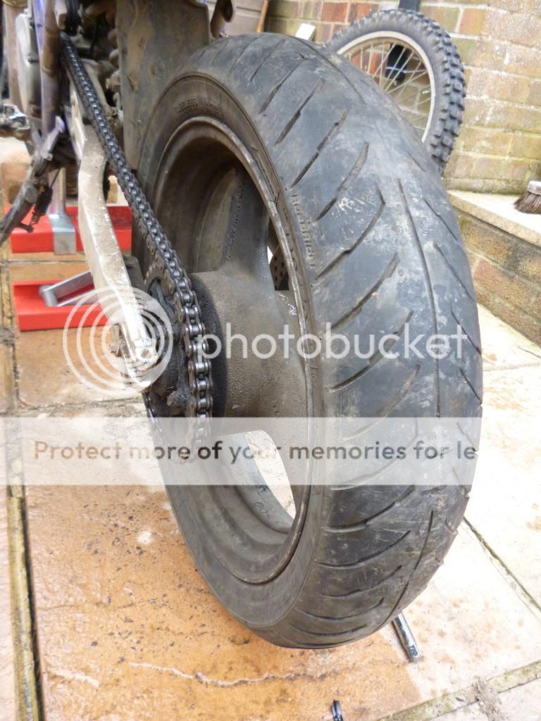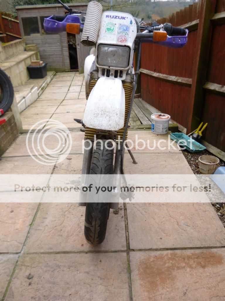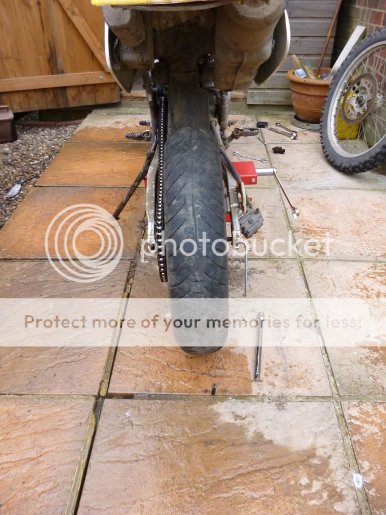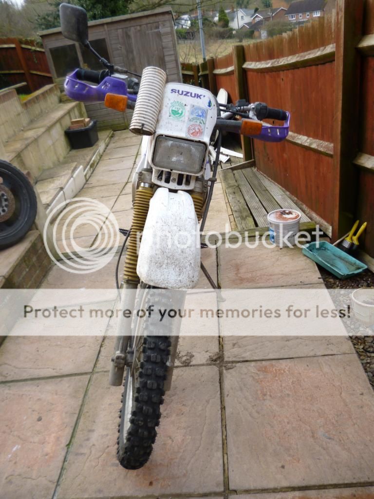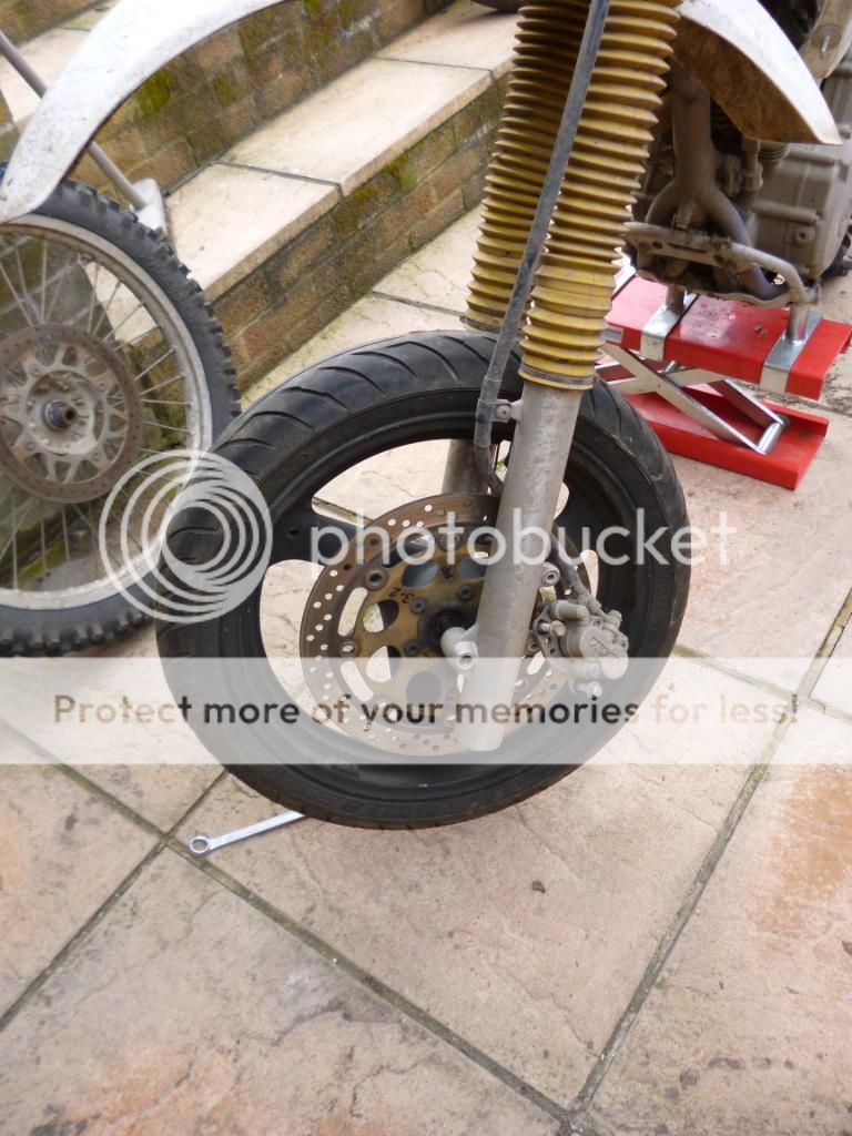 The plan is to fit the wheels, modify the exhaust (basically just removing the baffles and fitting a larger outlet pipe) and ive got an acerbis long range tank to fit. The bike will still be used off road so there's not a lot of point making it look good as i regularly fall off Laughing