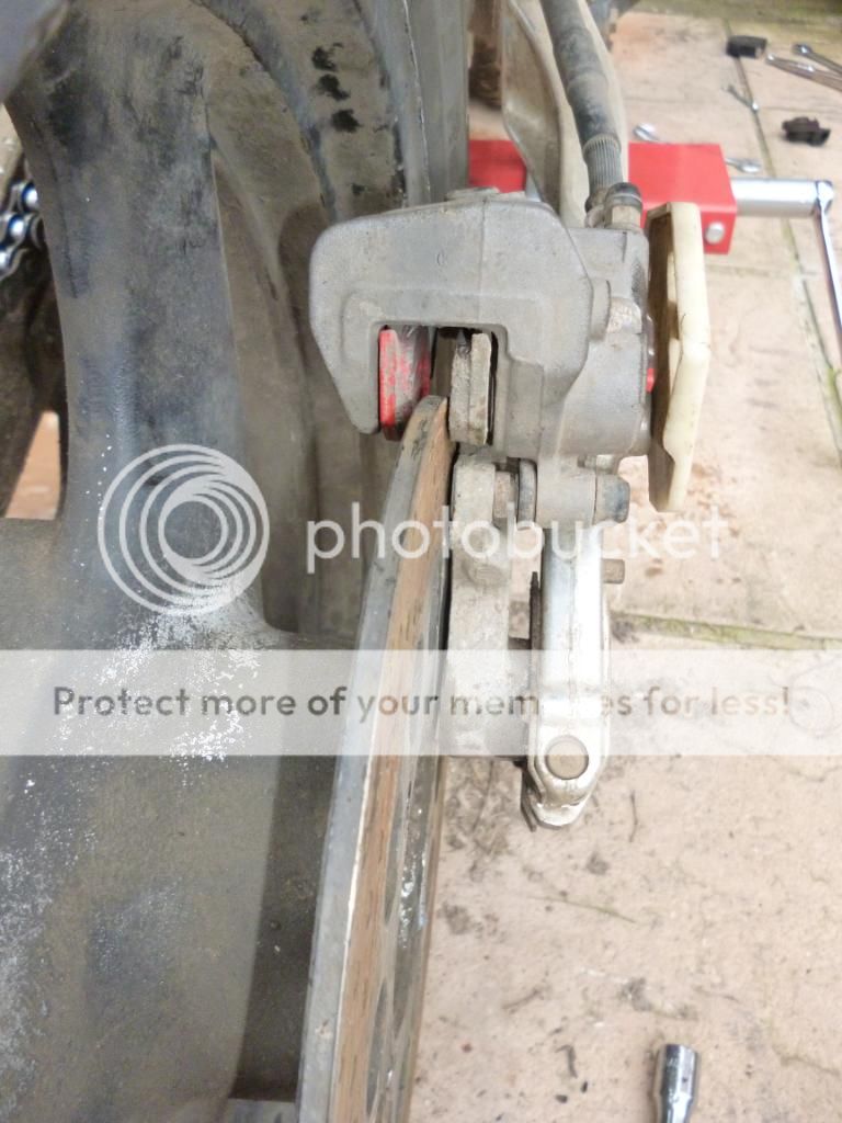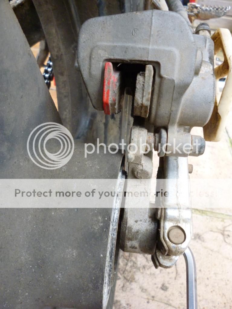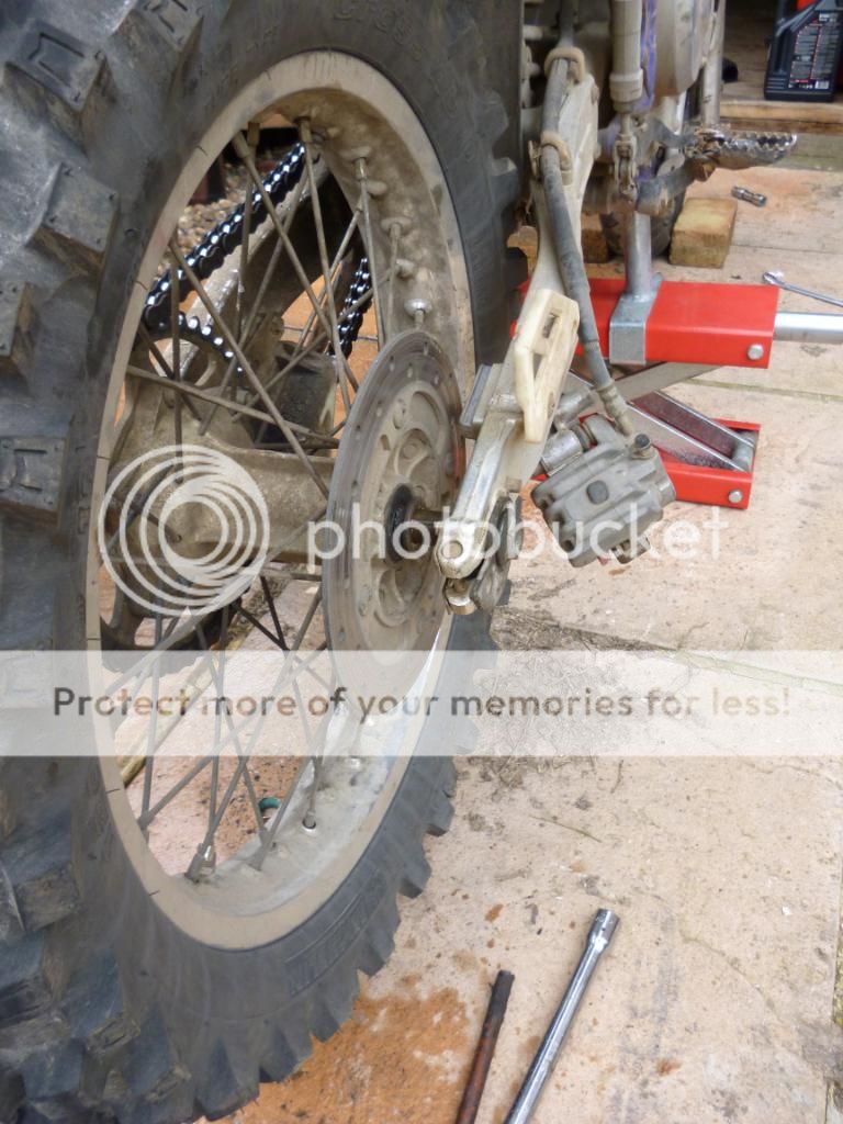 I started by removing the rear caliper and then measuring the distance between the sprocket and swingarm of the dr350 wheel so i could get an idea of the sprocket alignment.