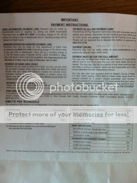 1 - There's no breakdown on how the fee is now £375, but that seems to add up to the 'potential fees' section on the reverse of the letter + the original £75. Any ideas what the £215 'attendance fee' is, I'd really sooner not pay some random number because some random company tells me too. I have a feeling their charges are going to get pretty creative.