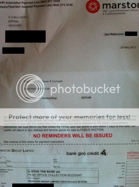 Anyway then nothing, and several house moves and then I got this letter, from a 3rd party bailiffs. I'm not too fussed about normal debt recovery people, I get the joke letters from people after SORN fines and TV licence all the time, but this seems a bit more serious. I will pay it, but I'd like to know where I stand on a few things.