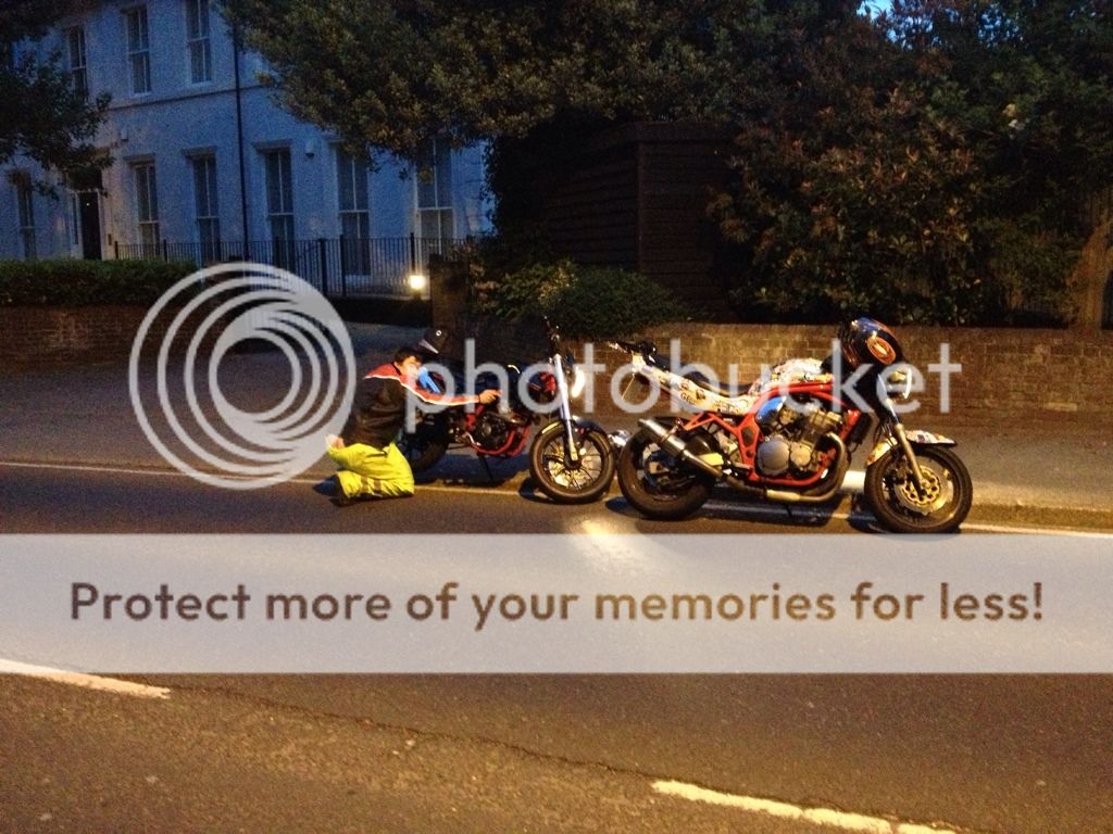 Anyway - folkestone, paddy ran through a massive no entry sign & then went the wrong way up a one way street so we walked to Mcdonalds for brekky. Then after that was M20 all the way home whereby the vara hit an impressive 75mph indicated with a pillion. ____________________ Please be aware that the above post may be full of complete nonsense.