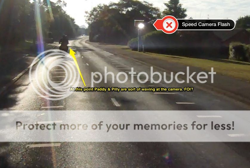 My pic posted full size. Grabbed from the video, obviously riding towards the sun (eventually) but you can clearly see the camera flash. It indeed flash at least half a dozen times.https://i1312.photobucket.com/albums/t525/wotsthestory/SpeedCamera_zpsf6b125f5.jpeg~original ____________________ Currently: Yamaha DT 125 LC2,Repsol Fireblade, and Bumblebee MSX 125 |