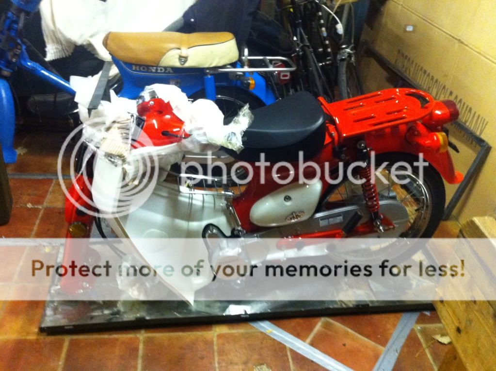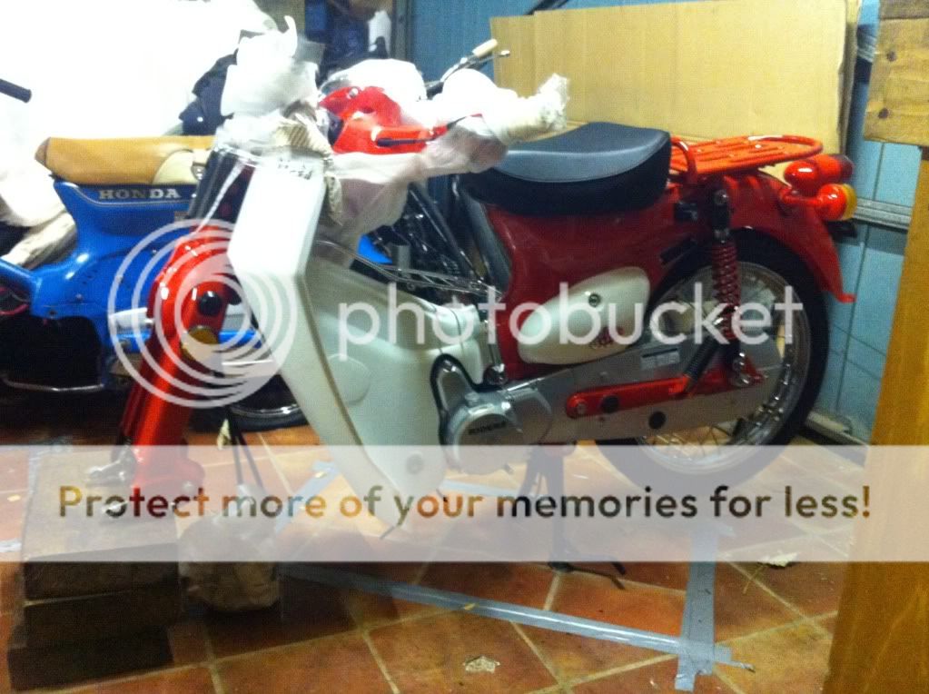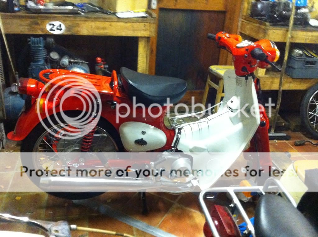 It's a 110cc 3 speed with electric start, a larger front drum and wider rear wheel than a C90. They do a single seat with a rack or a twin bench seat, I wanted a single seat so I can fit luggage. This bike is taking me from Le Havre - Catalunya in June for the GP.