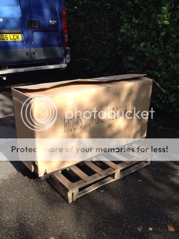 The bike is from Riders Yeovil. It was £610 in the crate, plus delivery of £85. I've got to register it (£55) and tax it, and get a numberplate when the V5 comes through, also insure it from the chassis number in order to register it.