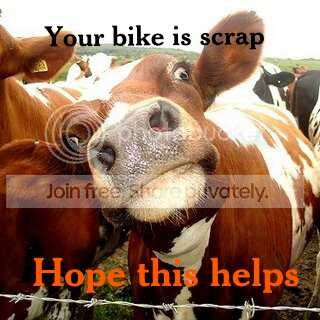 Last Monday I hit a cow I took my bike to JT's in Swansea and got them to carry out the work as there a registered yamaha dealer. Was told it wouldn't be ready until sometime next week as they would need to order parts from Holland, I got the phone call yesterday telling me it was ready to pick up.