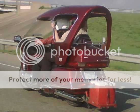 I dunno, those two while downright hideous are still fairly recognisable for what they are, namely a streetfighter wannabe and a sidecar outfit. The...object in the OP, on the other hand, would defy any and all attempts at classifying it. ____________________ Motorsapien Art |