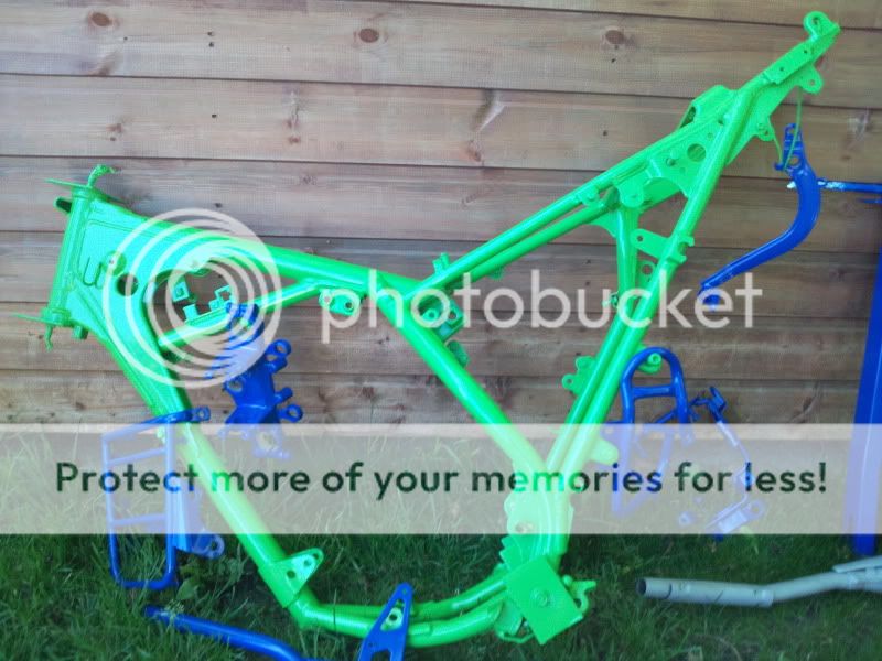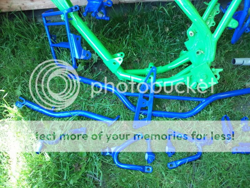 Fantastic job they have done on the frame and cycle parts mate, very smart! I'm really liking the blue green combination you've gone for as well, and it will be interesting to see how it looks all assembled, as im not sure i'd be brave enough to coat a swinging arm blue? I think it will work great when the whole bike is together and with contrasting graphics etc.