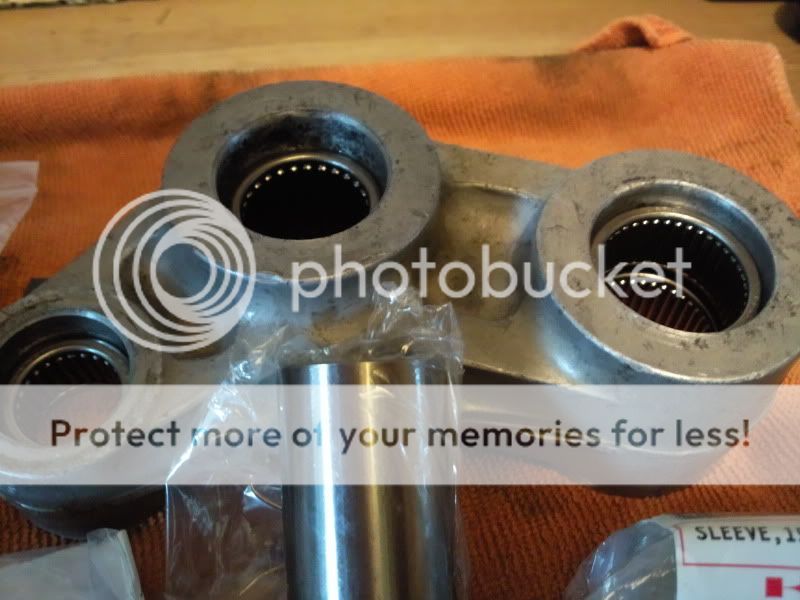 Pic has a old bearing and bush at the front to show you the state they where in the bushes were seized in the bearings and the bolts seized in the bushes the rollers in the bearing were worn flat. Linkage now has the new bearings pressed home.