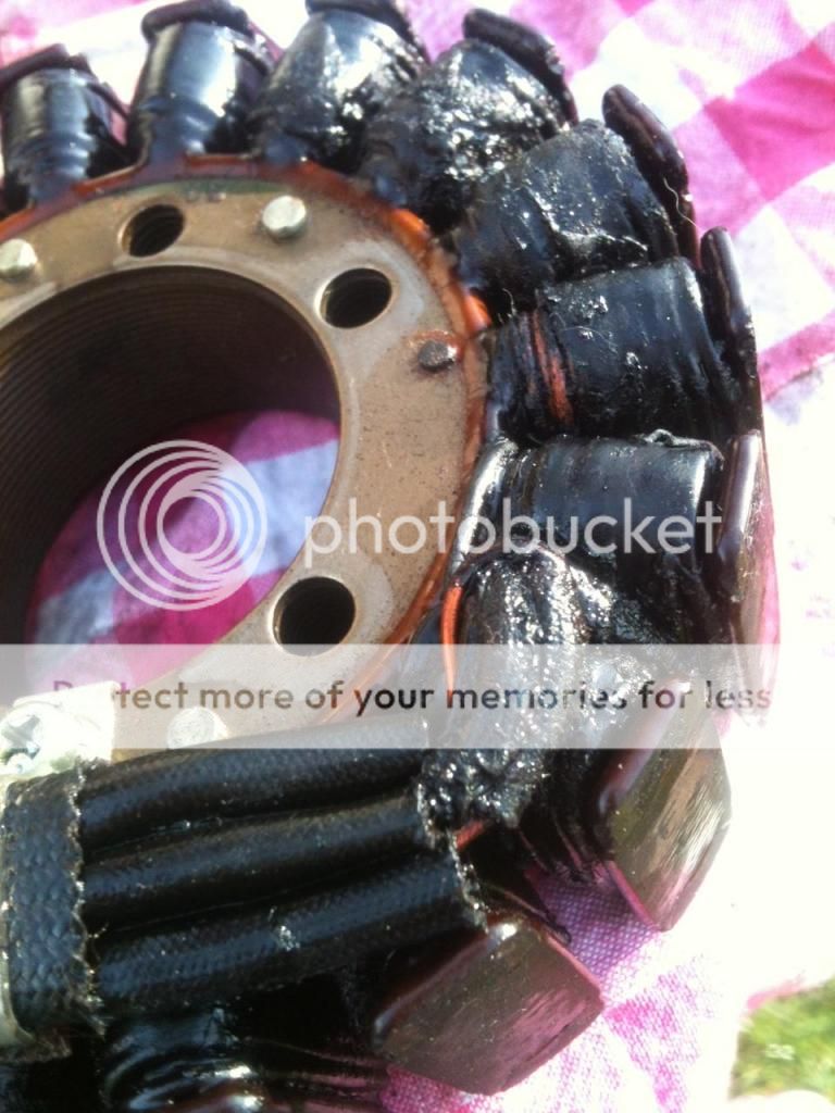 Looks like it's been rubbing on the rotor. Are the windings actually knackered? They don't look it. Try a phase-to-phase ohm test.