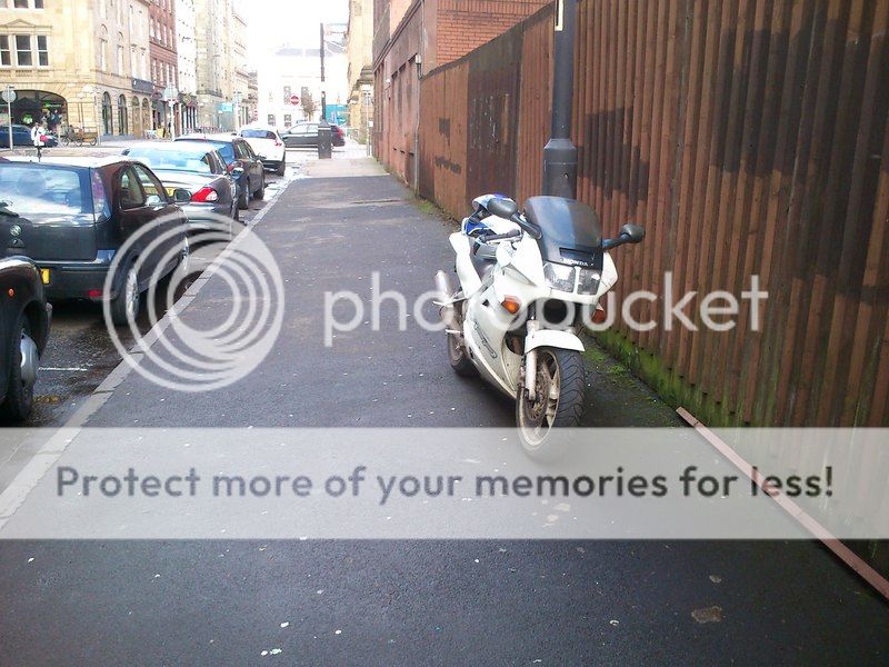 A few days after I moved back to Glasgow I couldn't find any parking bays for bikes, so thought my bike would have been safe enough on the pavement, I came back 12 minutes later and there was a parking ticket on it:
