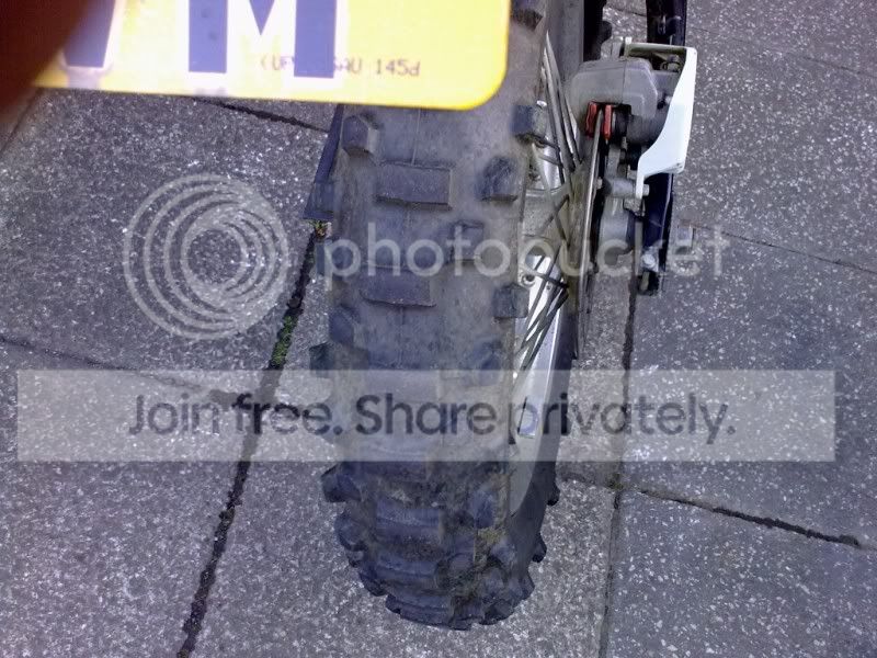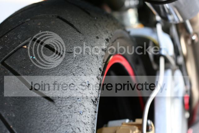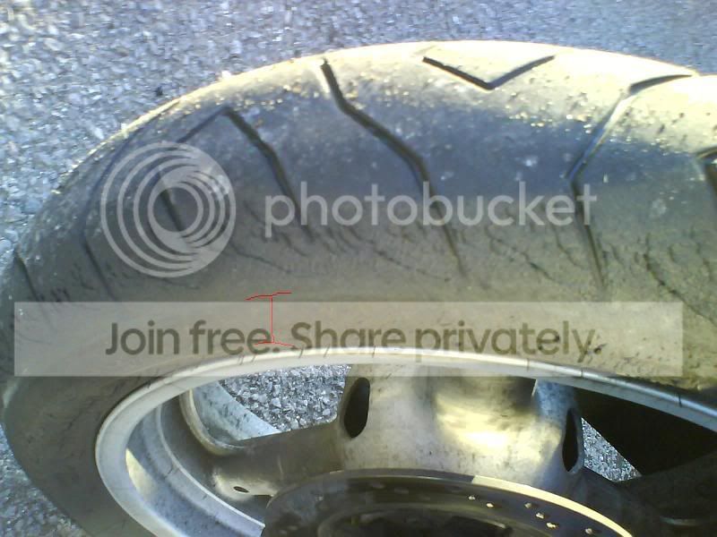 My tyre is square on the YBR, bald as shit Quite alot of chicken strip as when it's anything but bone dry, leaning = sliding  ____________________ These MC's wanna diss my baby mum