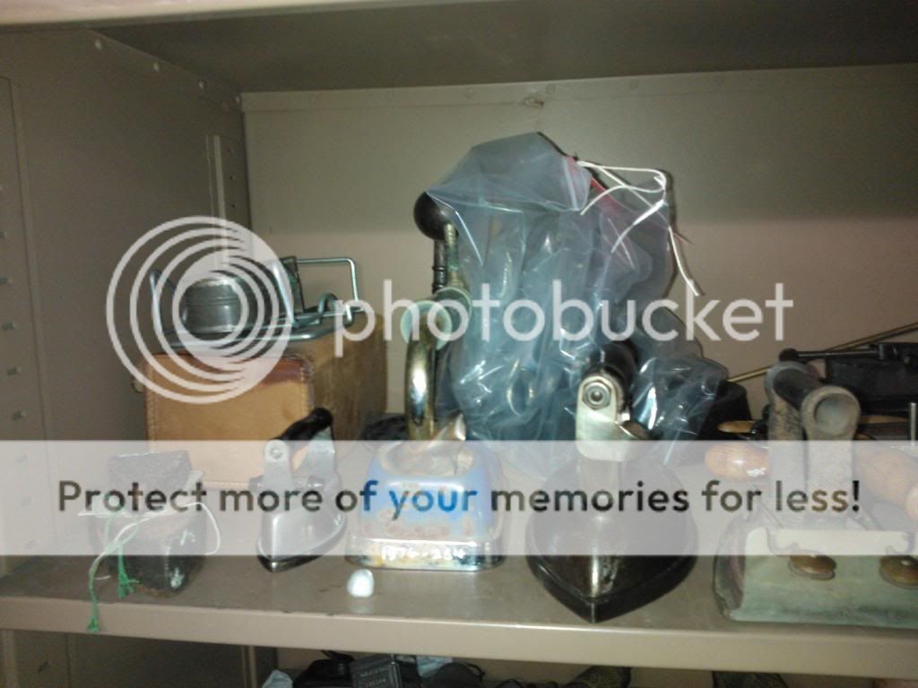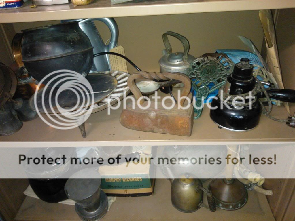Some old irons, a lamp and what I think is a sausage meat grinder?