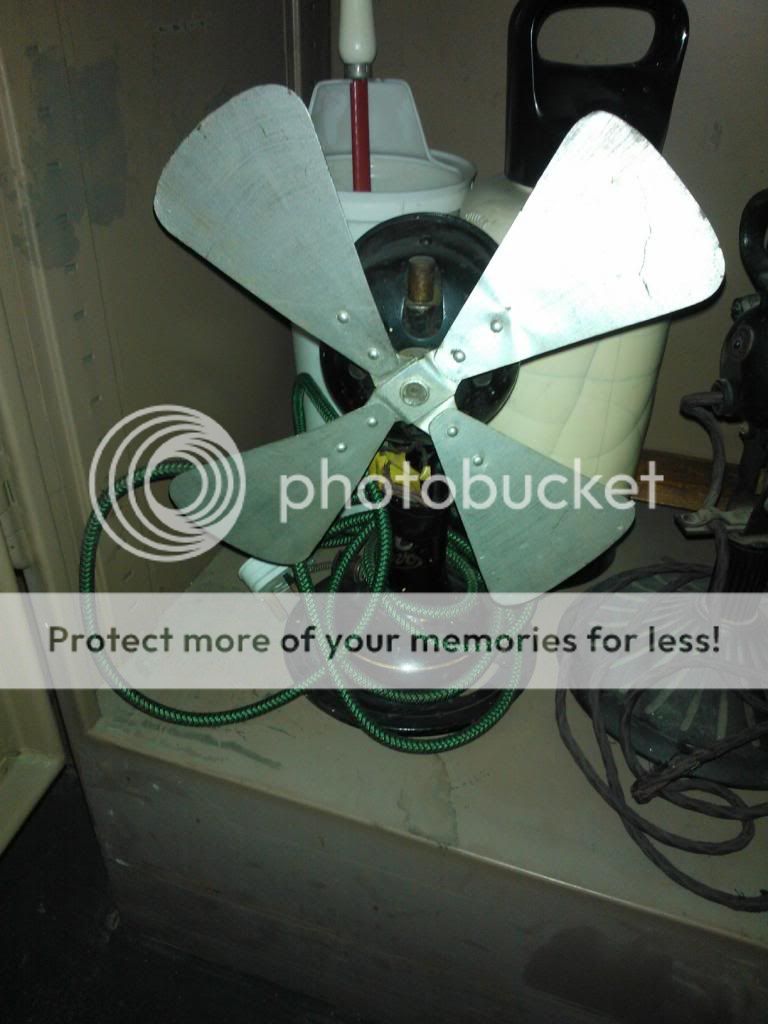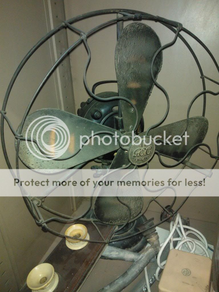 Real old school fan, no cage around the blades, health and safety at it's best.