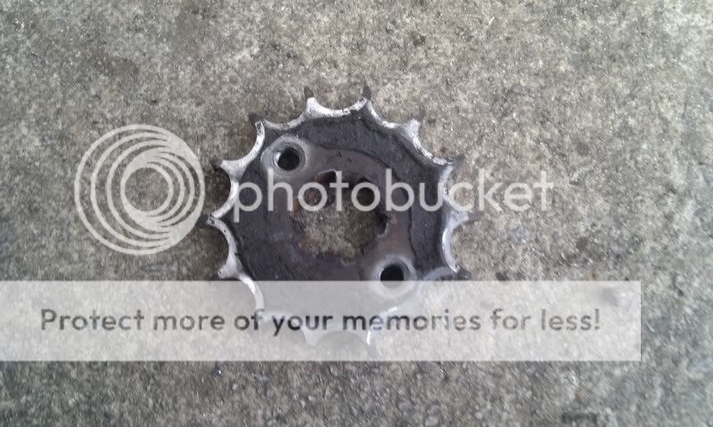 I have some (not very good) pictures of the old front sprocket (one of the teeth had snapped, and some of the others are bent)