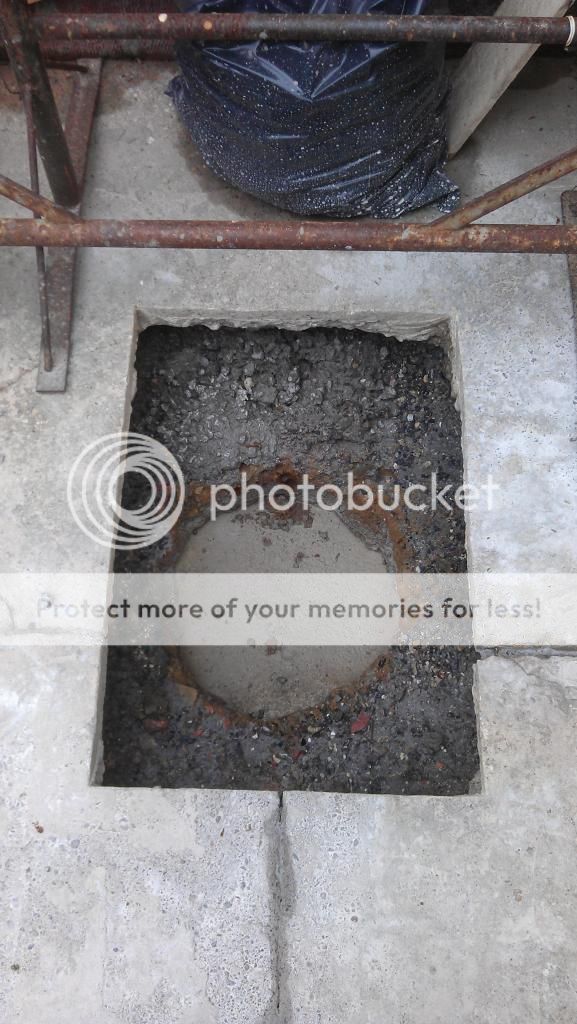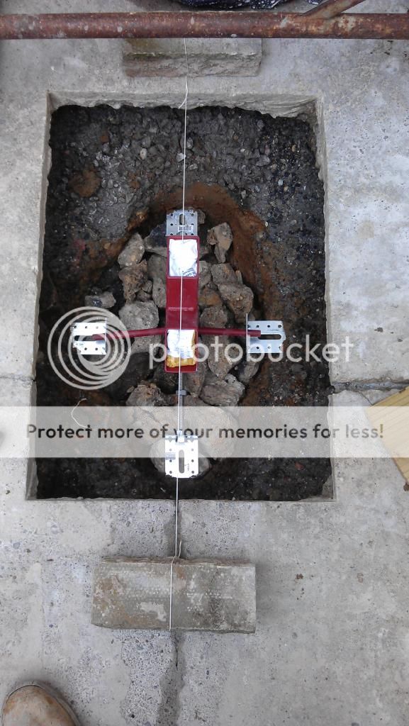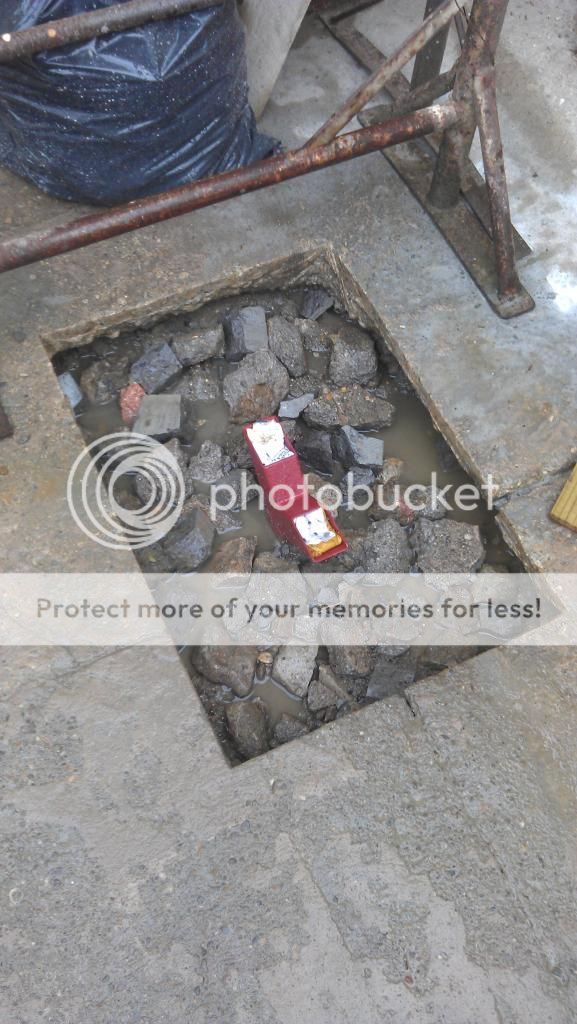 Filled after the hard core with concrete until flush but didn't have a picture of that stage. It's not coming out without