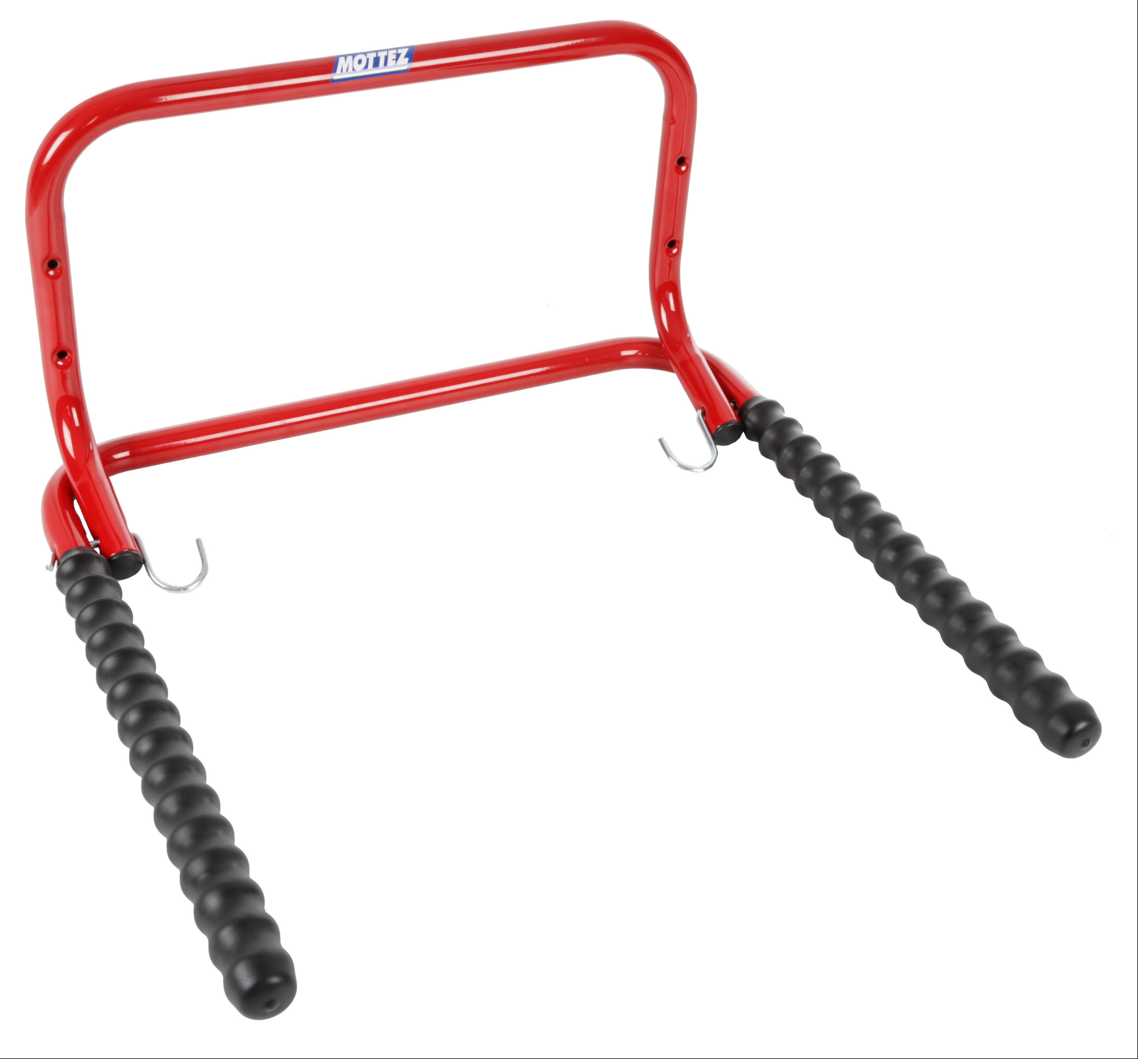 I don't like it much either. I'm thinking of mounting a post just below the ceiling that I can just hook the saddle over, and then another one to bungee the handle bars up.