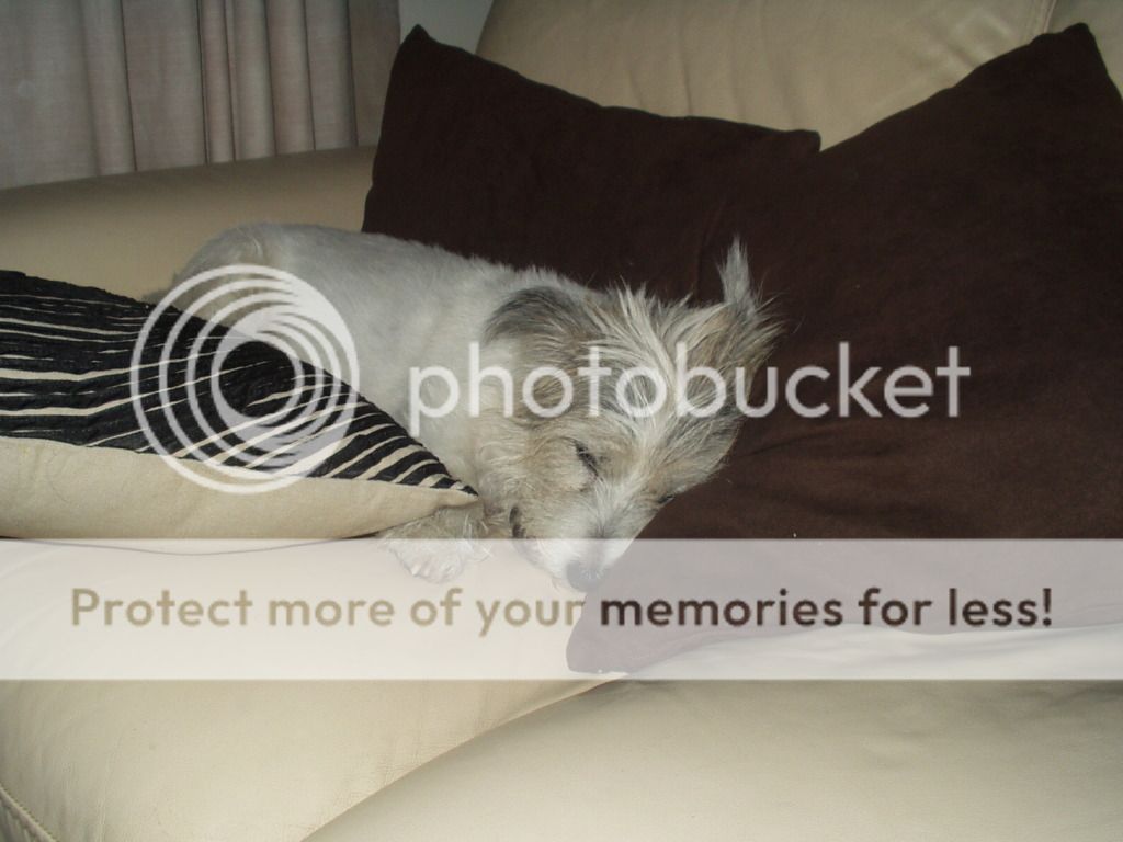 She's had all her injections and appears to have decided my sofa is now her home.