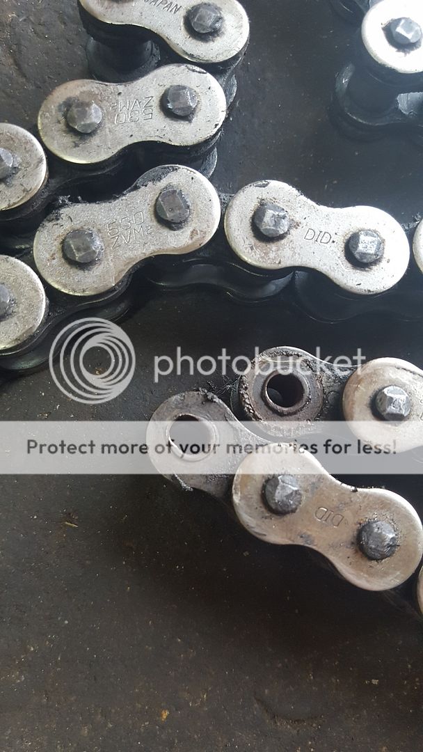 Yup, an O / X ring chain is supposed to have grease packed between the rings. The rivet link is no exception. ____________________ Biking is 1/20th as dangerous as horse riding.
