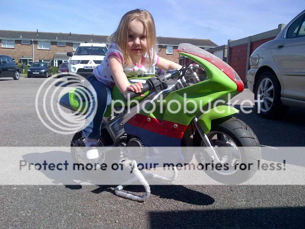 As above. She is keen, and always asks to go on 'her' mini moto in the garage (my dad bought it well over 10 years ago for absolutely no reason and it's never been started Laughing )
