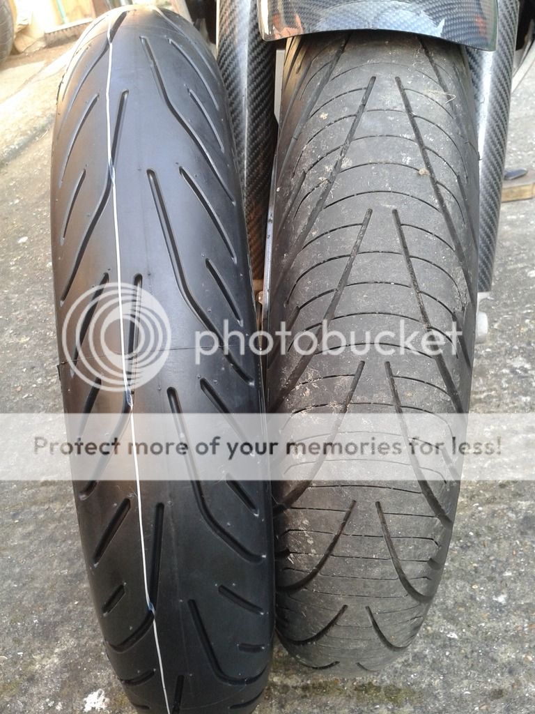 *I can't find any pictures, although I know I made some, but imagine a front tyre, where the left side is slick and the rest of the tyre still has enough thread.