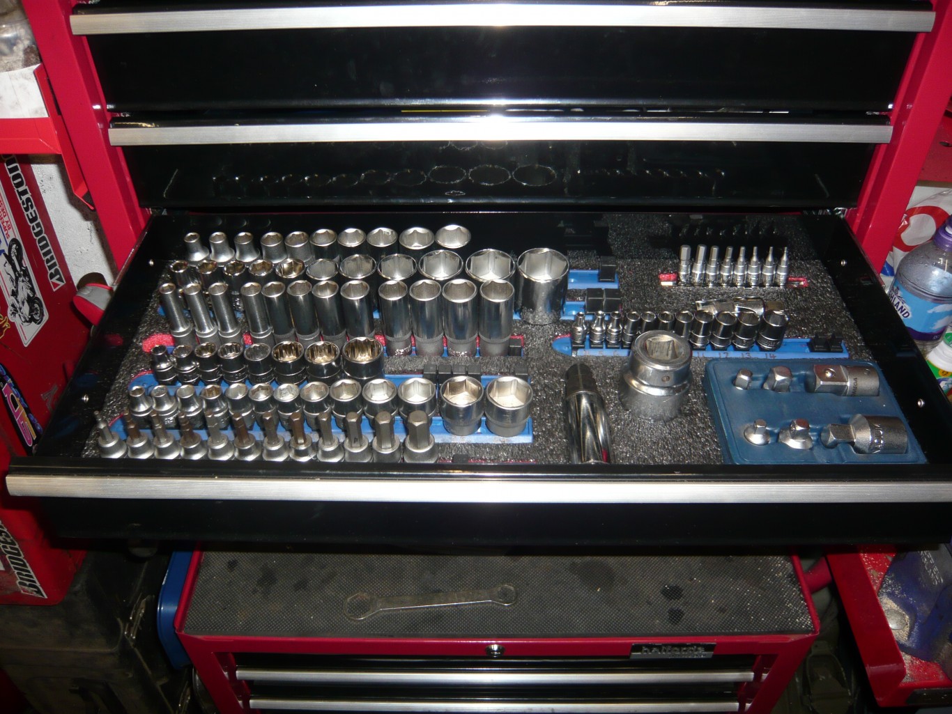 I have just put Sealey layered foam in a lot of my tool box drawers, cut around the sockets etc so they sit snug in it. Nothing moves now when the drawers get slammed or the box gets moved about on a lumpy floor.