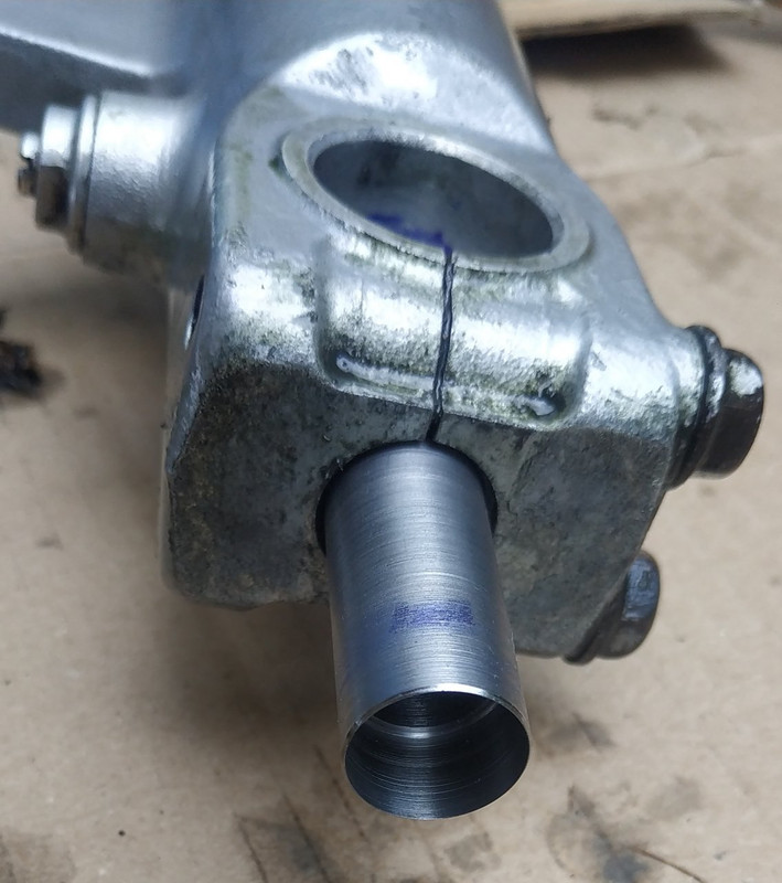 Now, I have no idea what the bolt is. 8mm key should be M10, but then the head would be 16mm and wont fit the 15.8mm bore in the forks. I dont remember grinding down the bolt head OD. Now I made up a tool expecting the head atleast 15mm, and it is not. Plenty of length I will try again 14mm and enlarge until I get a good fit, then turn the end off and go 0.1 tighter.