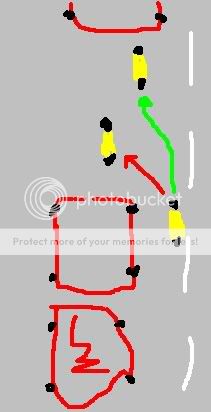 As you can see by my detailed diagram I have filtered past cars and wish to get into the gap. Is it right to go to the car infront and pull in behind it or to just nip infront of the car to the side of me?