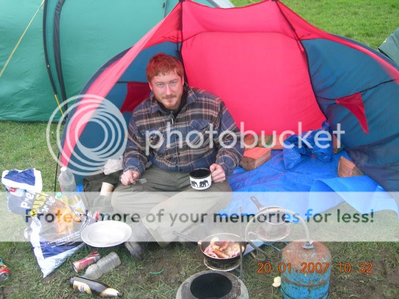 Mouse looking very happy with his Fire! Whilst nath has found the beer! - 21Chappers looking cold!